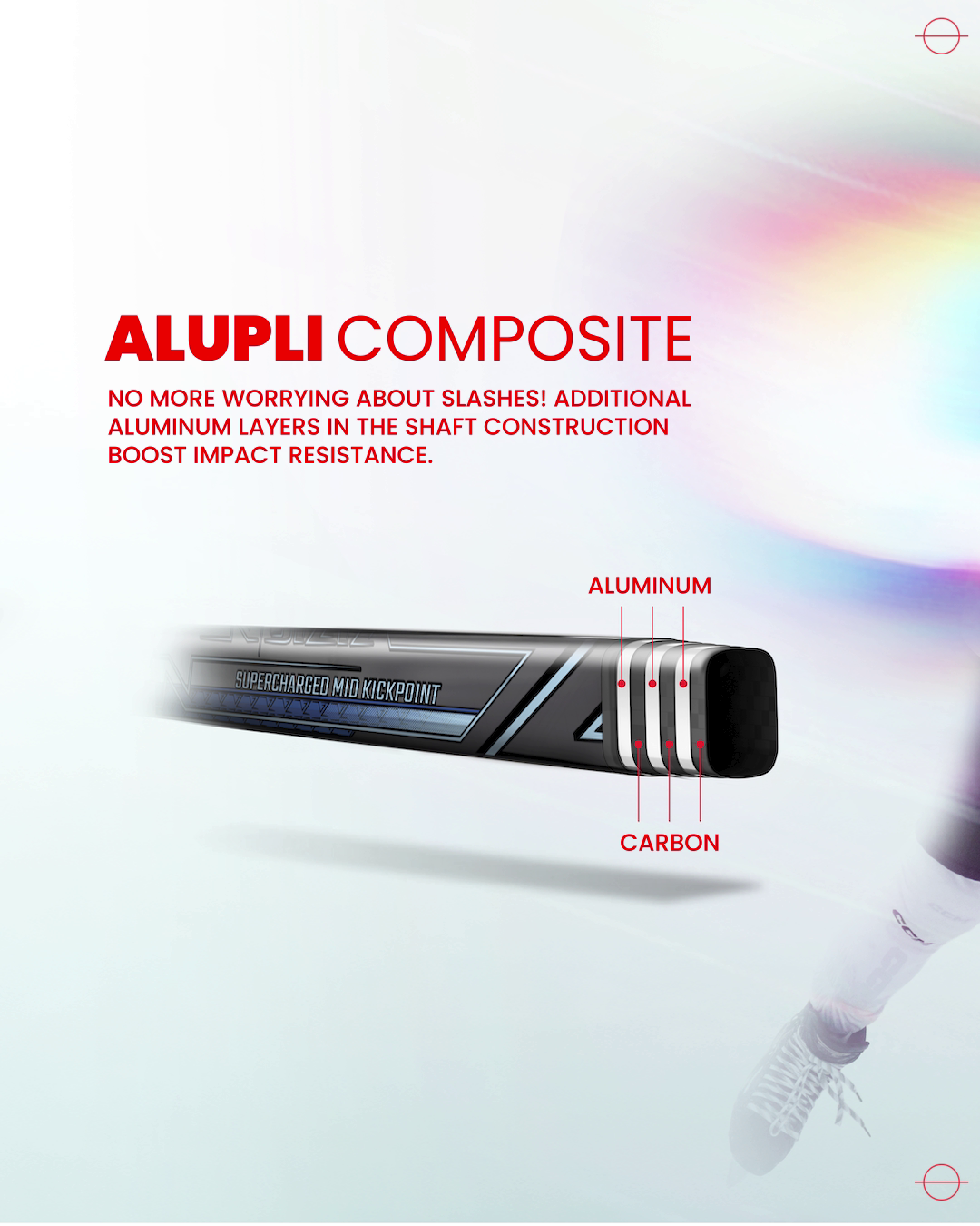 Built with reinforced aluminum layers within the carbon shaft, the ALUPLI composite boosts impact resistance and durability. The raised balance point creates a lighter feel without compromising strength giving you the confidence to battle through every slash.